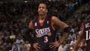 Iverson rocked the black 76ers jersey when he lifted the 2001 Most Valuable Player of the Year trophy, only adding to the nostalgia.