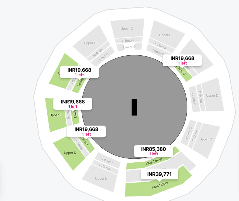 As per The New Indian Express, the lower stand tickets are being sold ten times higher than the original price.
