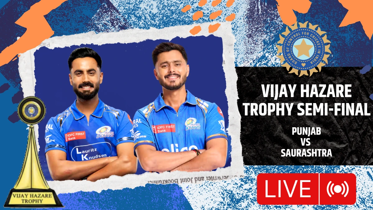 Punjab vs Saurashtra Live, Vijay Hazare Trophy, 2nd Semi-final: Harnoor Singh has been run-out after adding 60-run opening stand with Prabhsimran Singh. With only two games remaining, we are into the final act in the Vijay Hazare Trophy 2025/26. Vidarbha, on the back of Aman Mokhade, has reached the finals. But who will join them? Will it be the high-flying Punjab side or an in-form Saurashtra team that always plays like a unit? This Punjab team, despite missing the likes of Abhishek Sharma and Arshdeep Singh, is power-packed with IPL talent. Nehal Wadhera and Naman Dhir are there alongside captain Prabhsimran Singh. As for Saurashtra, they have a well-settled unit as well. Ankur Panwar has been superb with the ball with 19 wickets in 8 games.