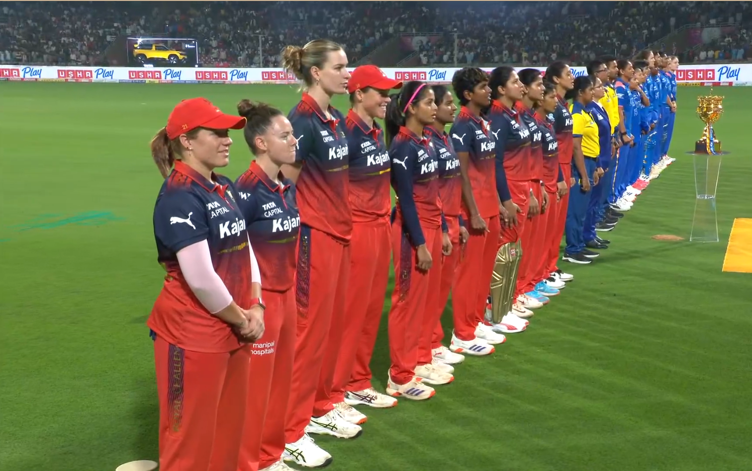 MI vs RCB WPL 2026 Live: National Anthem underway