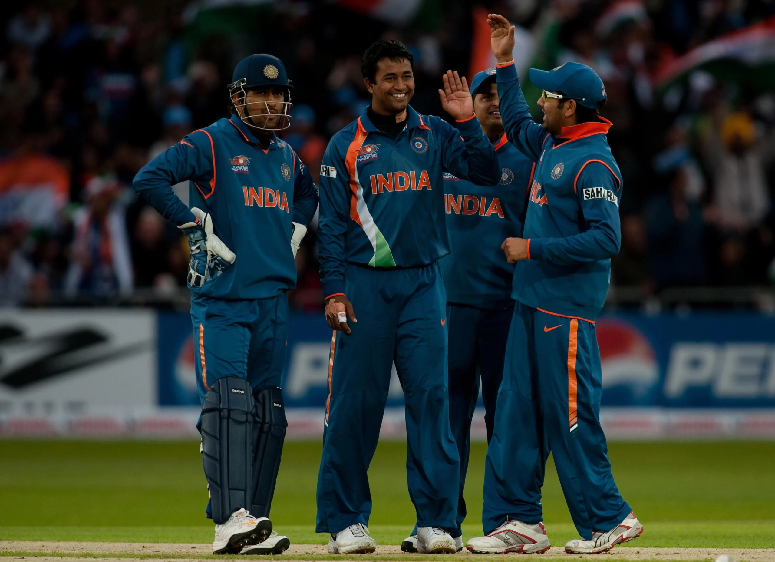 Interestingly, India wore the 2011 ODI World Cup jersey for this tournament. Although a new T20-specific kit (featuring a modern aesthetic) was unveiled before the tournament, the BCCI and team decided to stick with the 2011 ODI kit (dark blue with tricolour stripes on the shoulders) as it was considered a “lucky charm” after the World Cup win. However, nothing much changed as India bowed out of Super 8s for the third edition in a row.