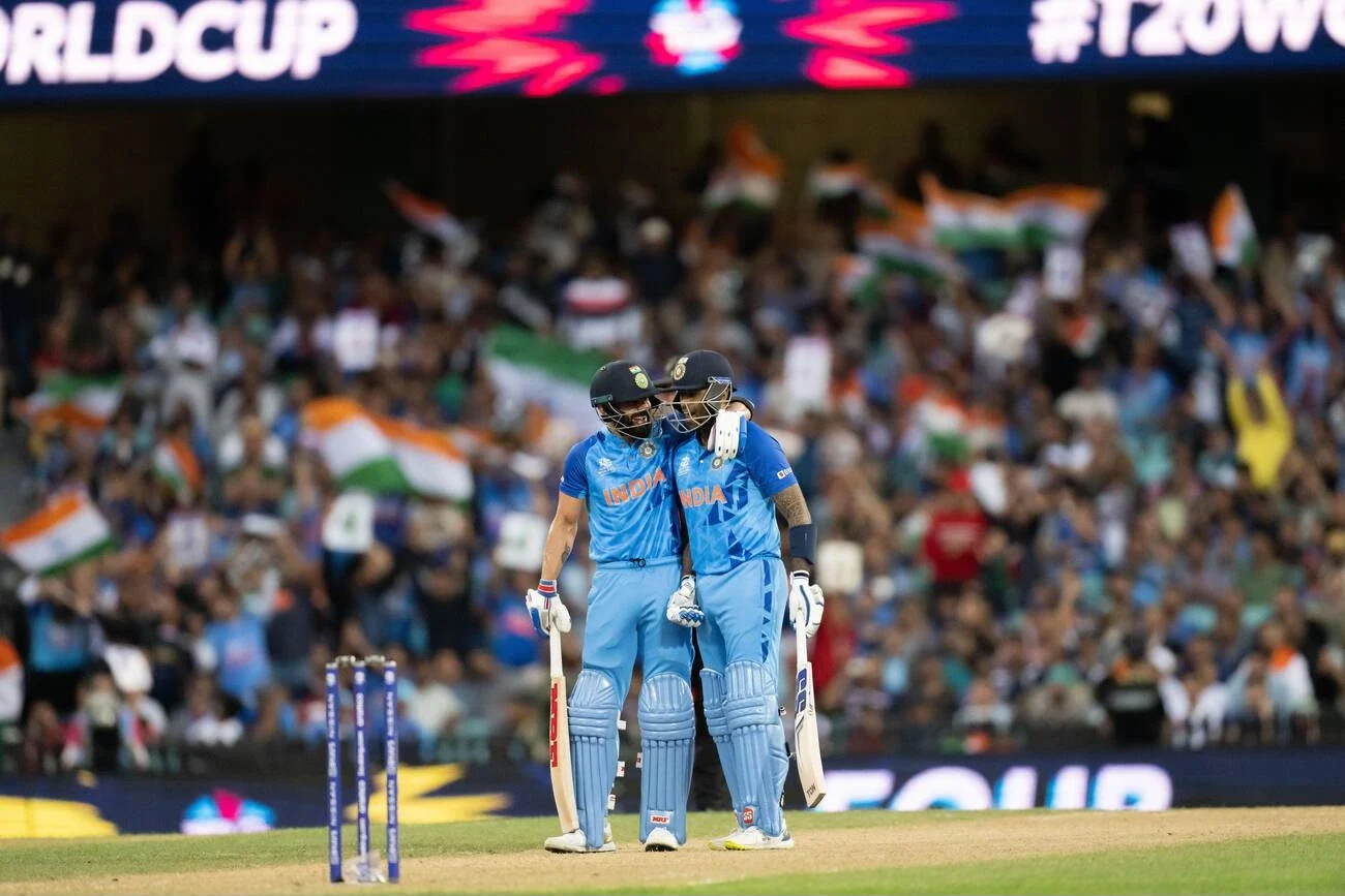 The T20 World Cup 2022 had one of the freshest jerseys. A “Sky Blue” jersey that moved away from the navy tones of 2021. It featured a textured pattern on the chest and slightly darker blue sleeves. That particular jersey just shouts Virat Kohli vs Pakistan at the MCG! India lost the semi-final clash against eventual champions England in this edition.