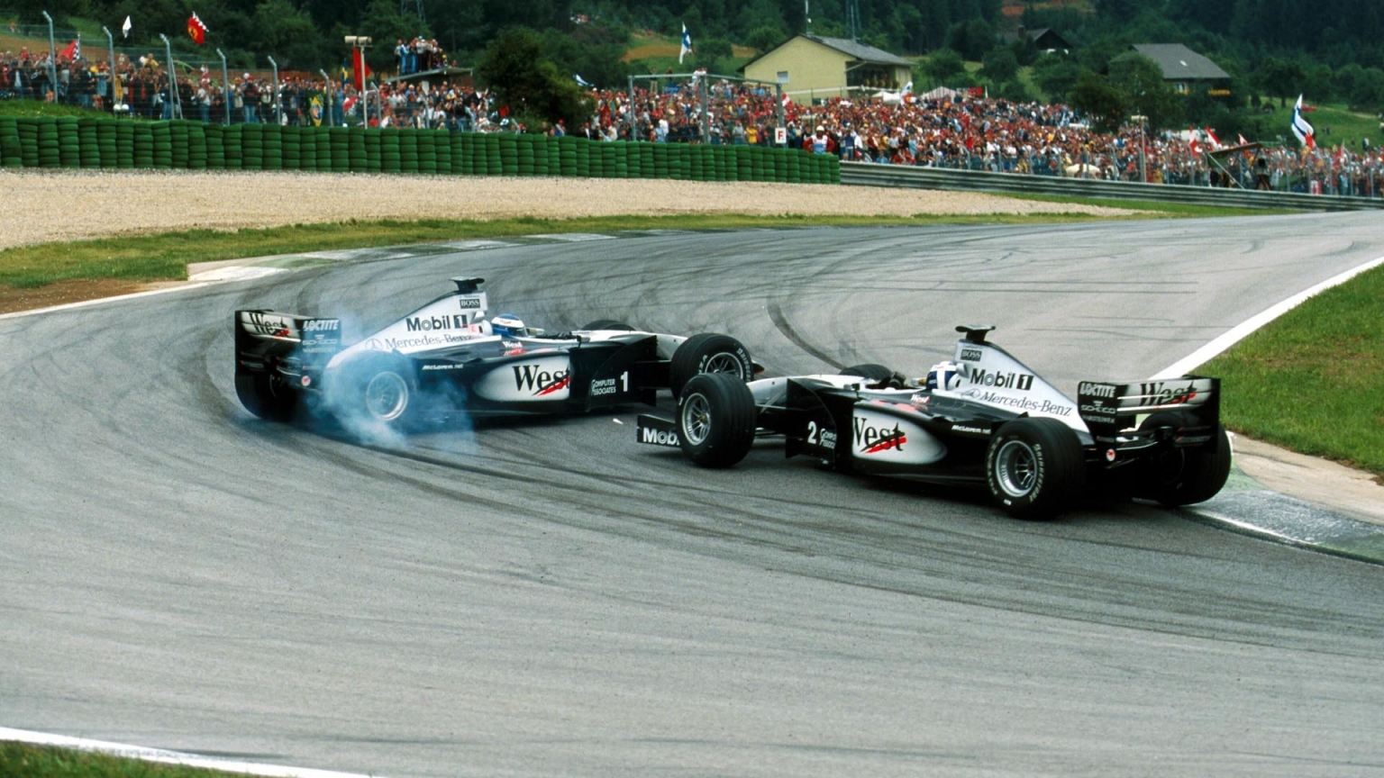 F1 Austrian GP: Mika Hakkinen crashes with David Coulthard