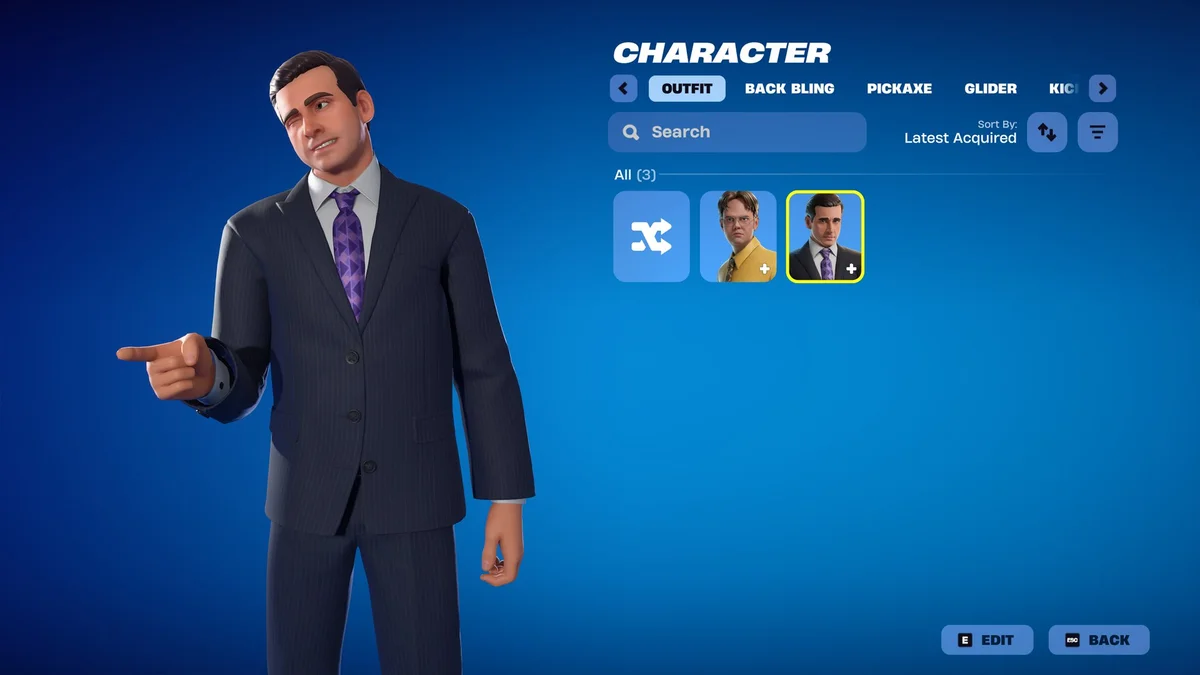 - Michael Scott Skin (1,500 V-Bucks): Features Steve Carell’s character in his signature black suit and purple tie.