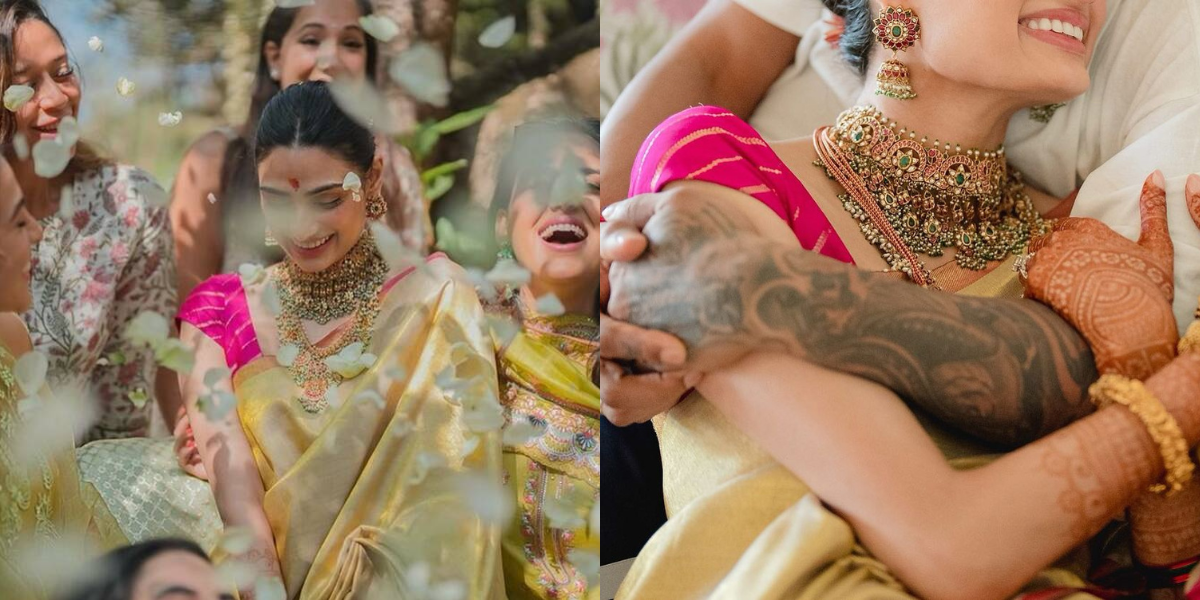 Having shared some adorable pictures from their haldi ceremony, Athiya Shetty followed it up with some pictures from the pre-wedding ceremony. The Bollywood diva looked elegant in a gold and pink silk saree for the Shagun ceremony. The ceremony basically is an event where every elder of the family blesses the bride/groom. In one of the photos, KL Rahul wraps Athiya Shetty in his arms in a heartwarming picture.