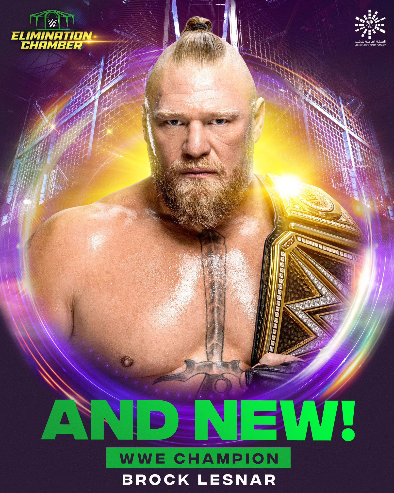 The crowd is going nuts as soon as the music of The Beast, Brock Lesnar hits. The former WWE Champion enters his first Elimination Chamber match of his career.